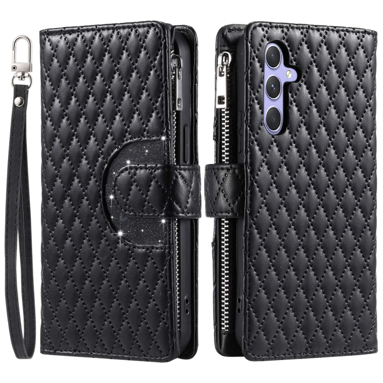 Estuche de Cuero Samsung Galaxy A25 5G con Billetera Cremallera y Celosía Purpurina (Negro)
