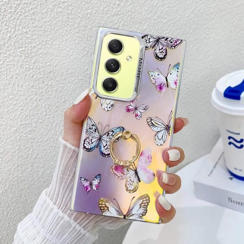 Estuche para Teléfono Samsung Galaxy A34 5G con Soporte Anillo Mariposa Láser (Mariposas Rosadas)