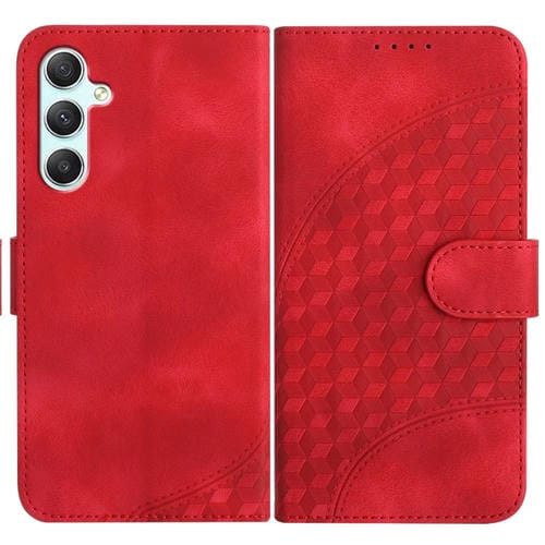 Funda para Samsung Galaxy A34 5G Yx0060 de Cuero con Relieve y Cabeza de Elefante con Cordón (Rojo)