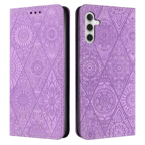 Estuche para Teléfono Samsung Galaxy A34 Cuero Adsorción En Relieve Étnico (Púrpura)