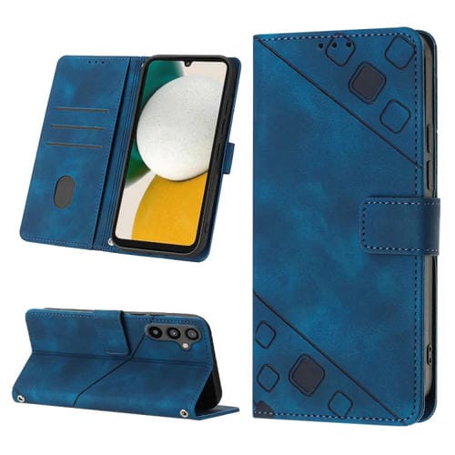 Estuche para Teléfono Samsung Galaxy A34 Cuero En Relieve con Tacto de Piel (Azul)