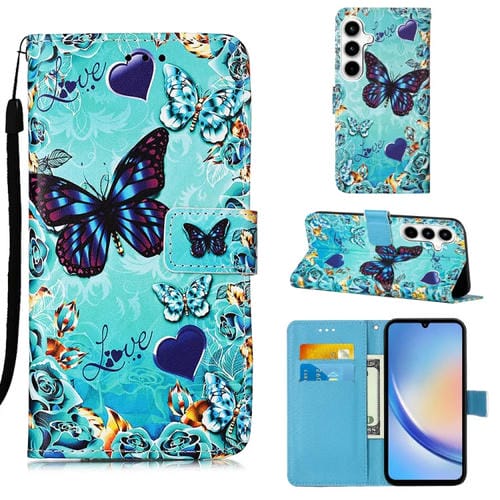 Funda para Teléfono Samsung Galaxy A35 5G Cuero Tejido Liso Patrón Mariposa Cariñosa