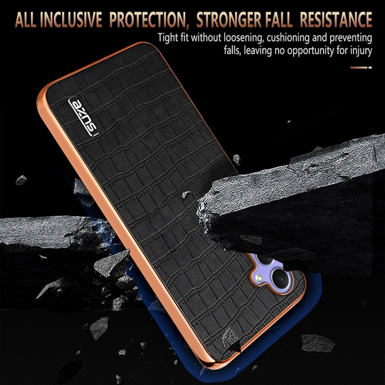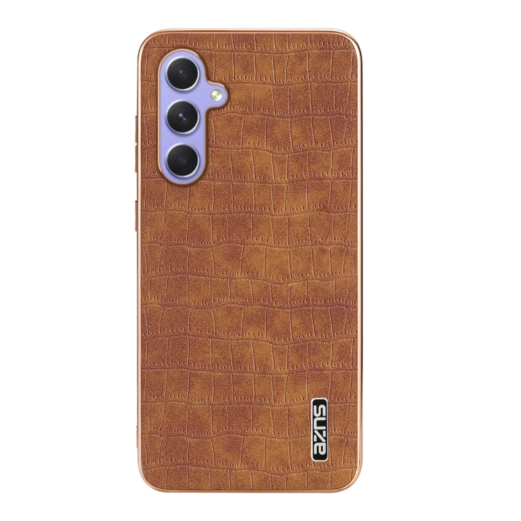 Estuche para Teléfono Samsung Galaxy A35 Azns Cobertura Total Textura Cocodrilo Marco Galvanizado (Marrón)