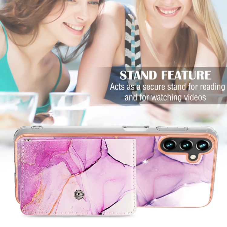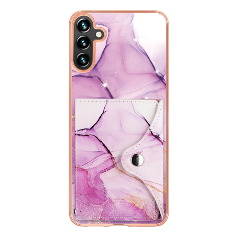 Estuche para Teléfono Samsung Galaxy A35 con Ranura para Tarjeta Imd Patrón Mármol (Oro Rosa Púrpura)