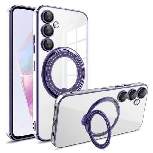 Estuche para teléfono Samsung Galaxy A35 Galvanoplastia Magsafe Soporte Rotación 360 grados a prueba de golpes (Púrpura Oscuro)