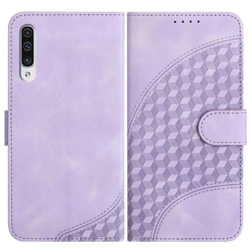 Funda de Cuero Samsung Galaxy A50 A50S Yx0060 con Relieve y Cabeza de Elefante con Cordón (Púrpura Claro)