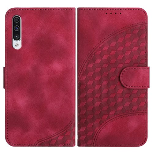 Funda de Cuero Samsung Galaxy A50 A50S Yx0060 Relieve Cabeza de Elefante con Cordón (Rojo Rosa)