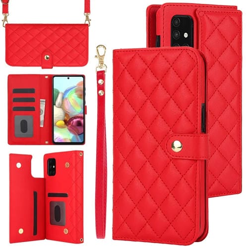Estuche para Teléfono Samsung Galaxy A51 4G Crossbody de Cuero Rómbico Multifunción (Rojo)