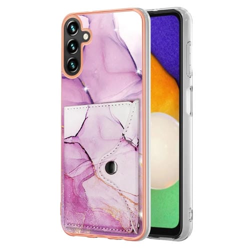 Estuche para Teléfono Samsung Galaxy A54 5G con Ranura para Tarjeta Imd y Patrón de Mármol (Oro Rosa Púrpura)