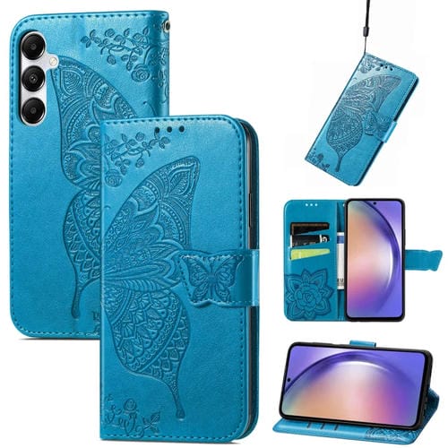 Funda para Teléfono Samsung Galaxy A55 5G Cuero Relieve Flor y Mariposa (Azul)
