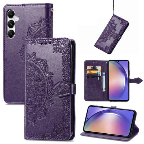 Funda para Teléfono Samsung Galaxy A55 5G Cuero Relieve Flor de Mandala (Púrpura)