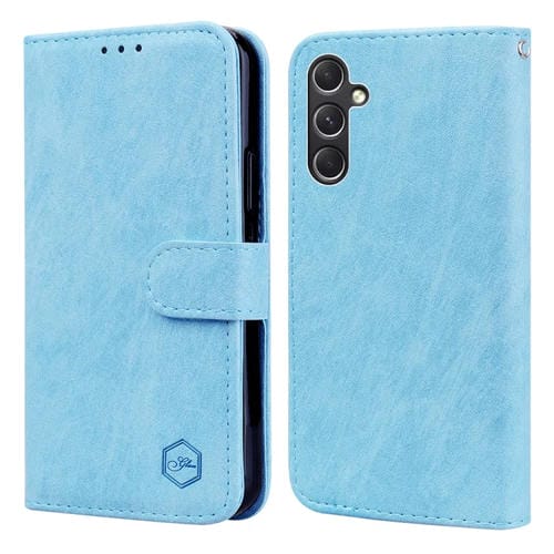 Funda para Samsung Galaxy A55 5G Textura de Cuero Aceitoso PU + TPU (Azul Claro)