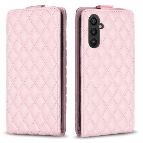 Funda de Cuero Samsung Galaxy A55 Diamond Lattice con Tapa Vertical (Rosa)