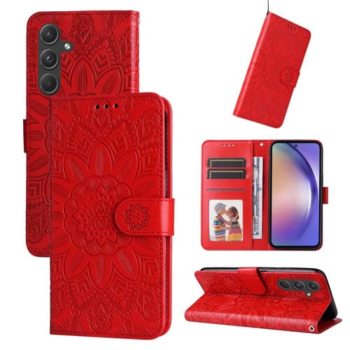 Funda de Cuero Samsung Galaxy A55 con Girasol en Relieve (Rojo)
