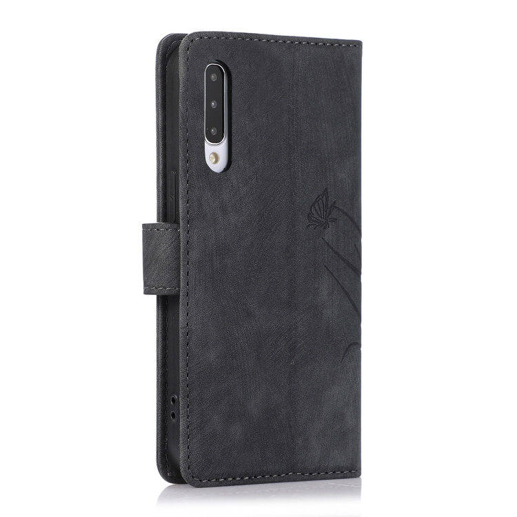 Funda para Teléfono Samsung Galaxy A70 A70S Cuero Relieve Mariposa Orquídea (Negro)