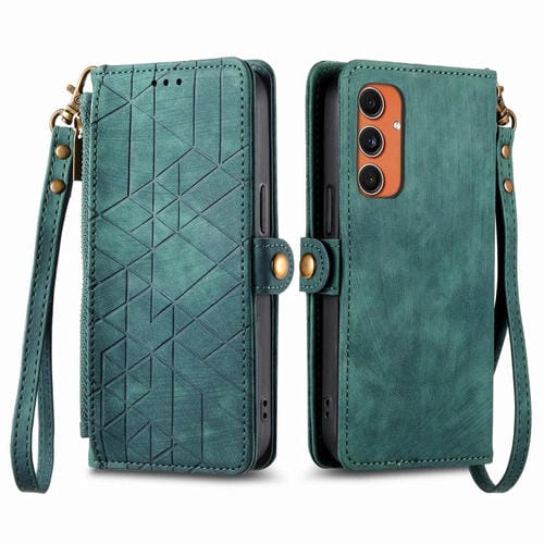 Estuche para Teléfono Samsung Galaxy C55 Cuero con Hebilla Lateral y Billetera con Cremallera (Verde)