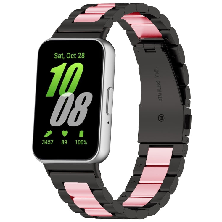 Correa de Reloj Samsung Galaxy Fit 3 SM-R390 Metal Acero Inoxidable Tres Cuentas (Negro + Rosa)