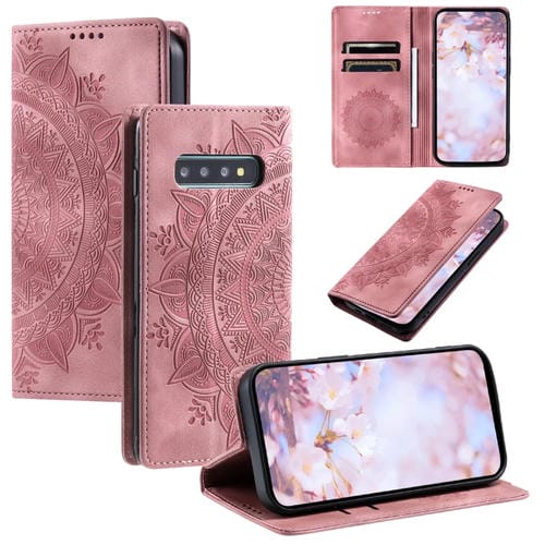 Estuche para Teléfono Samsung Galaxy S10 Cuero Magnético Relieve Tótem (Oro Rosa)