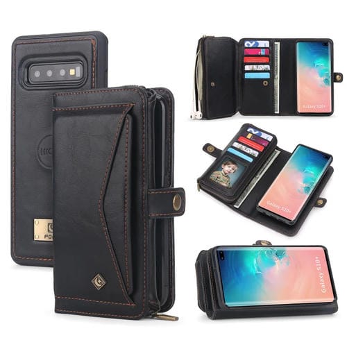 Funda de Cuero para Samsung Galaxy S10 con Billetera y Cremallera Multifuncional (Negro)