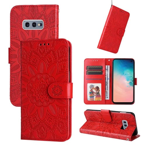 Estuche para teléfono Samsung Galaxy S10E Cuero Estampado Girasol En Relieve (Rojo)