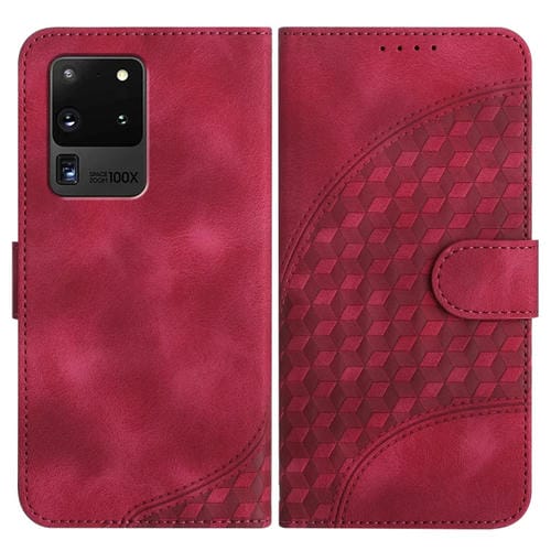 Funda para Samsung Galaxy S20 Ultra 5G Yx0060 Cuero con Relieve y Cabeza de Elefante con Cordón (Rojo Rosa)
