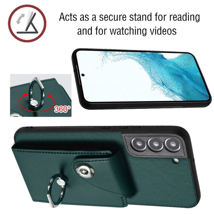 Funda para Teléfono Samsung Galaxy S21 FE 5G Pu con Soporte para Anillo y Bolsa para Tarjeta (Verde)