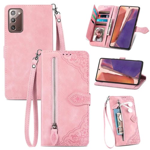 Funda para Samsung Galaxy S24 + 5G Cuero con Cremallera y Flores en Relieve (Rosa)