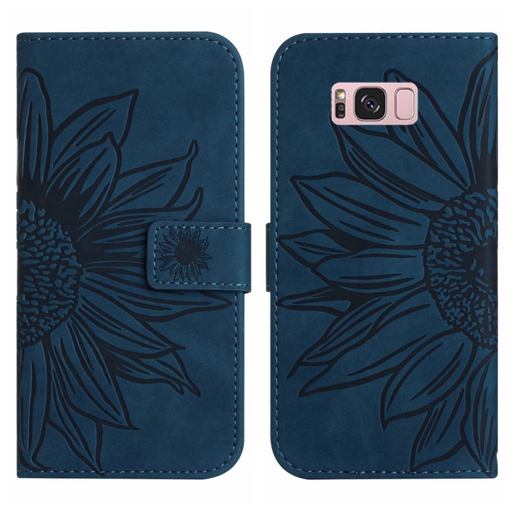 Funda de Cuero Samsung Galaxy S8+ Skin Feel Sun Flower Pattern con Cordón (Azul Tinta)
