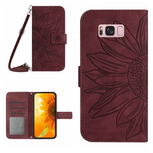 Funda de Cuero Samsung Galaxy S8+ Skin Feel Sun Flower Flip con Cordón (Rojo Vino)