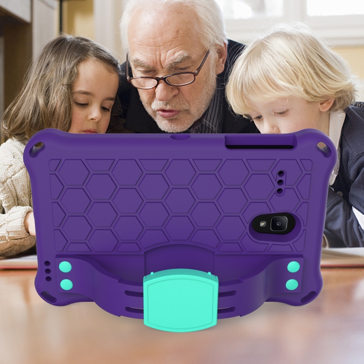 Funda Protectora para Samsung Galaxy Tab A 8.0 (2018) T387 Eva + Pc A Prueba de Golpes Cuatro Esquinas con Correas (Purple + Aqua)