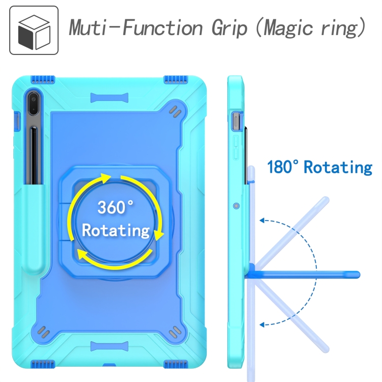 Funda Tablet Samsung Galaxy Tab S7+ S8+ S7 FE Silicone PC Bracelet Holder (Verde Menta + Azul)