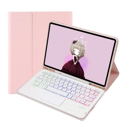 Funda Teclado Bluetooth de Cuero para Samsung Galaxy Tab S8 / S7 A700B-As Candy Color Backlight (Rosa)