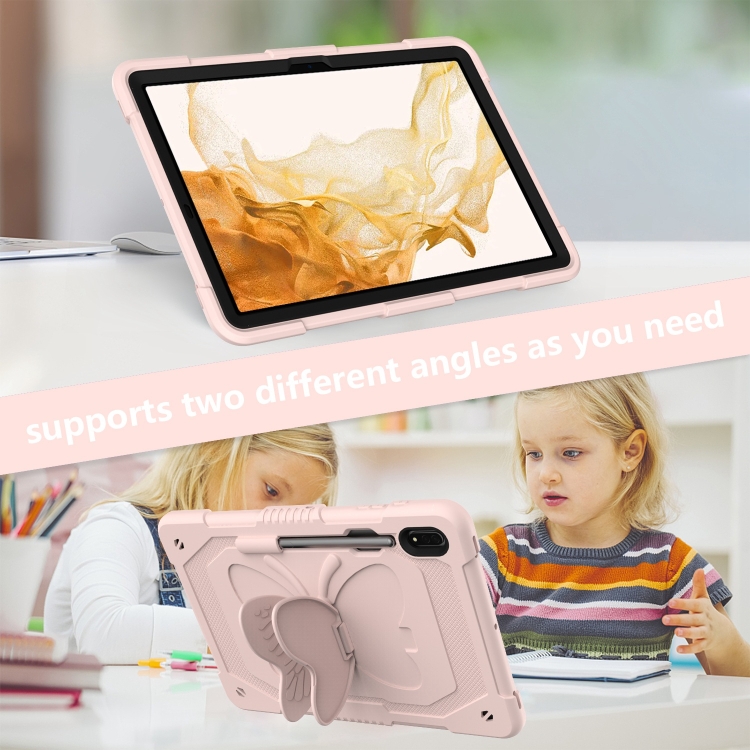 Funda Tablet Samsung Galaxy Tab S8+ / S7+ Butterfly Kickstand Hard Rugged (Rose Pink)