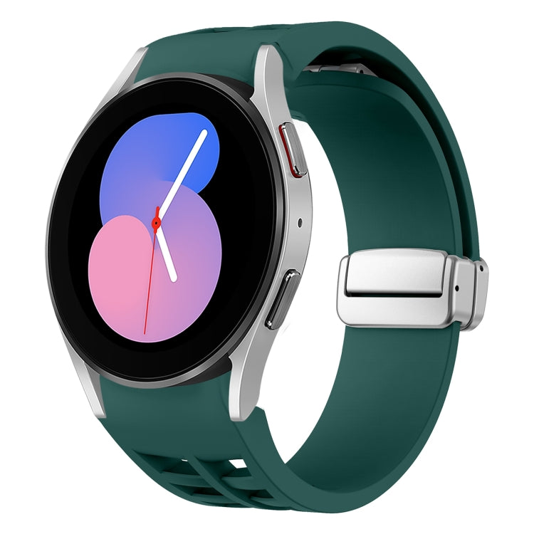 Correa de Silicona para Samsung Galaxy Watch 5 40/44mm Richard con Hebilla Plateada Plegable Magnética (Verde Oscuro)