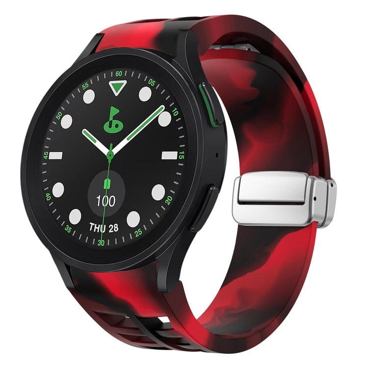 Correa de Silicona para Samsung Galaxy Watch 5 Pro Golf Edition Richard Correa con Hebilla Plateada Plegable Magnética (Camuflaje Rojo Negro)