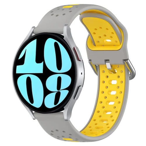 Banda de Reloj de Silicona para Samsung Galaxy Watch 6 40mm 20mm Dos Colores Transpirable (Gris + Amarillo)