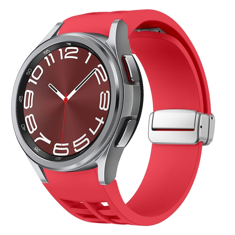 Correa de Silicona para Samsung Galaxy Watch 6 Classic 43/47mm con Hebilla Plateada Plegable Magnética (Rojo)