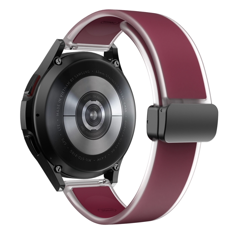 Correa de Silicona para Samsung Galaxy Watch6/5/4 con Hebilla Negra Magnética Translúcida (Rojo Vino)