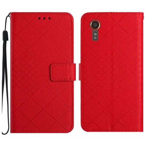 Funda para Samsung Galaxy Xcover 7 5G Cuero Textura Rejilla Rómbica (Rojo)