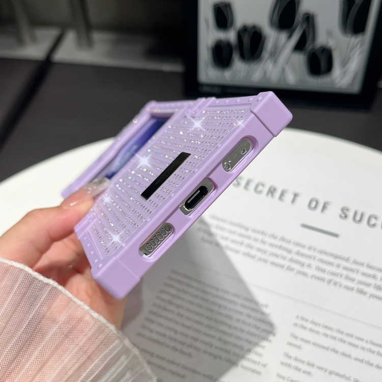 Estuche para teléfono Samsung Galaxy Z Flip4 5G PC a prueba de golpes con diamantes completos y logotipo (Naranja)