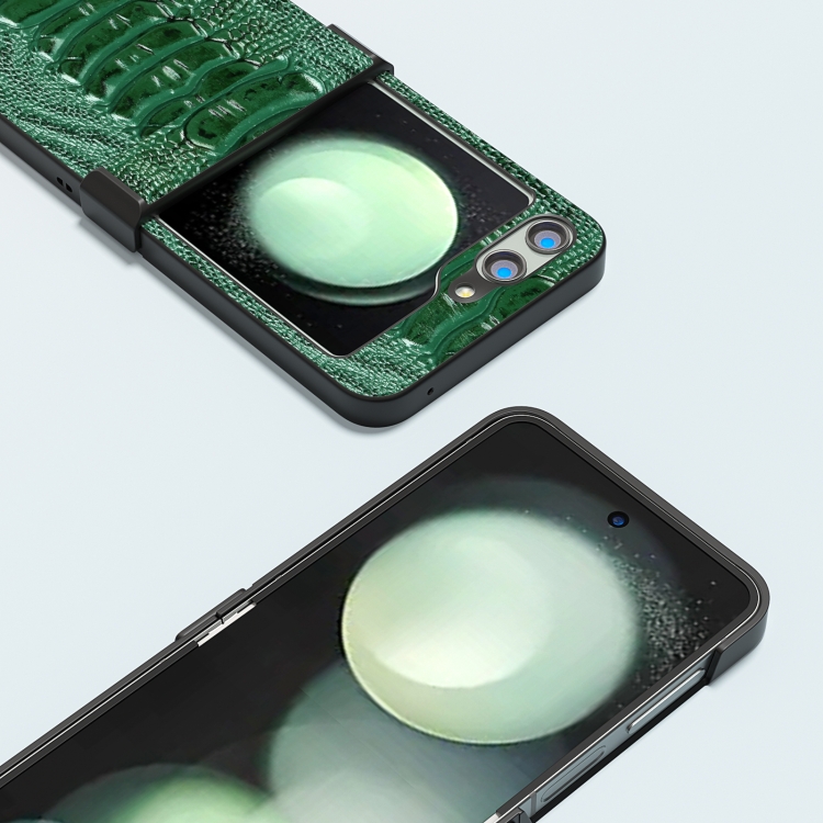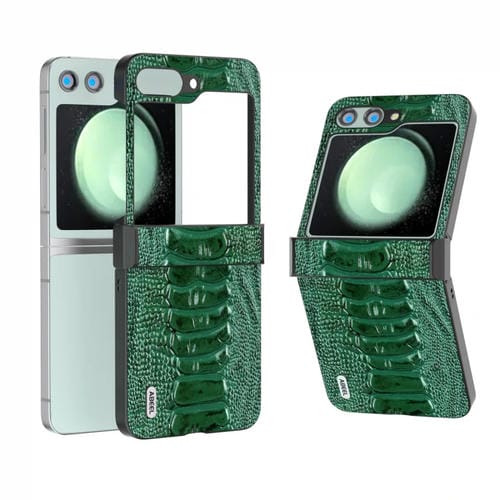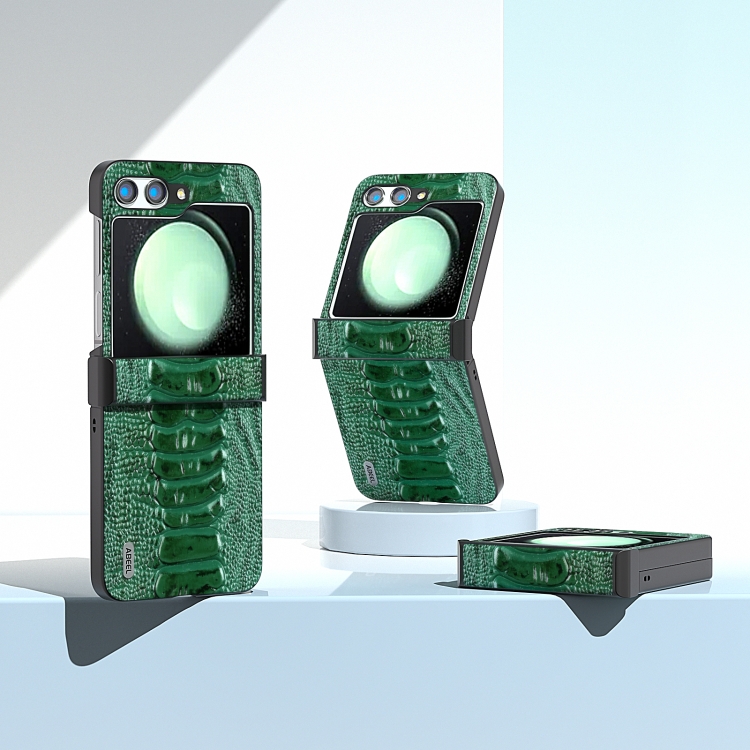Funda para Samsung Galaxy Z Flip5 Abeel Hinge Serie Weilai Cuero Genuino (Verde)