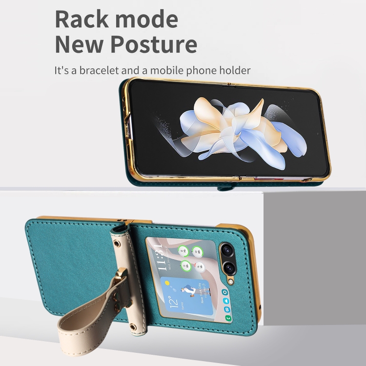 Estuche para Teléfono Samsung Galaxy Z Flip5 Skin Feel Cruzado de Cobertura Total con Correa de Mano (Verde Oscuro)