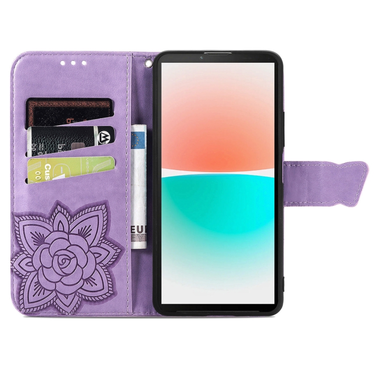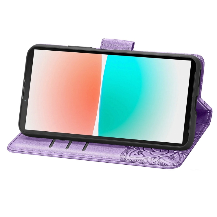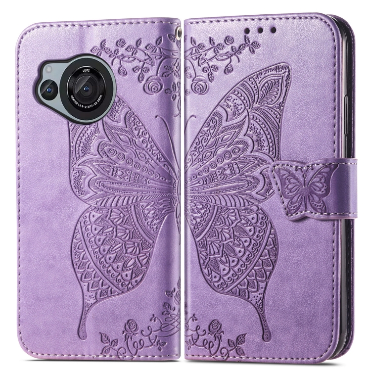 Estuche para Sharp Aquos R8 Butterfly Love Flower en Cuero En Relieve (Lavanda)