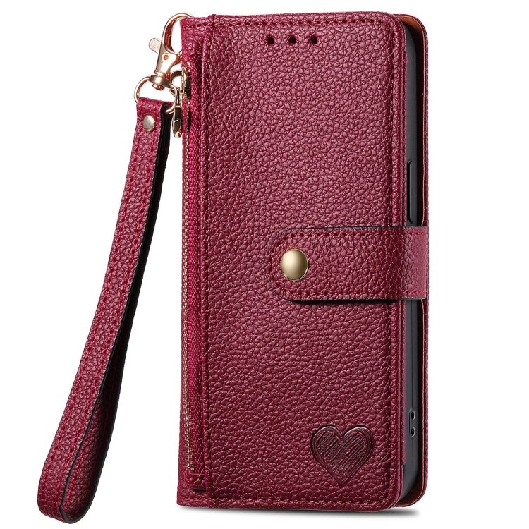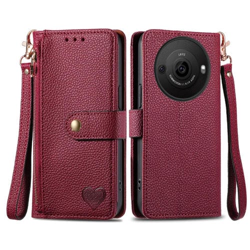 Funda de Cuero para Sharp Aquos R8 Pro Love Zipper con Lanyard (Rojo)
