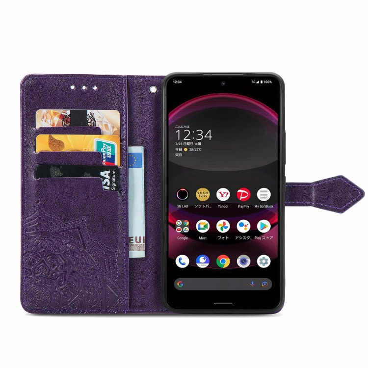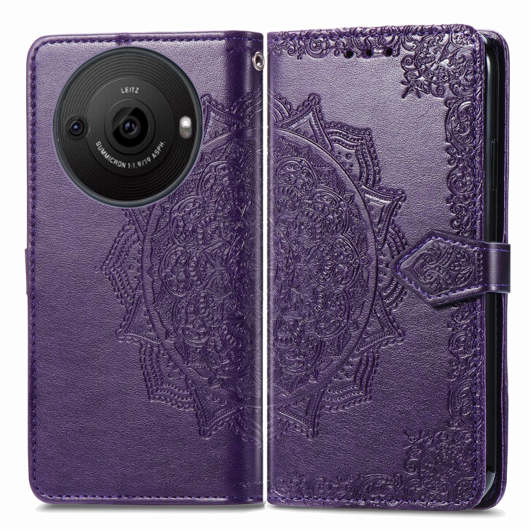 Estuche para Sharp Aquos R8 Pro Mandala Flower de Cuero en Relieve (Púrpura)