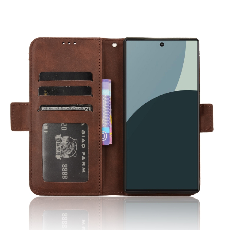 Funda para Sharp Aquos R9 Skin Feel con Textura de Becerro y Ranuras para Tarjetas (Marrón)