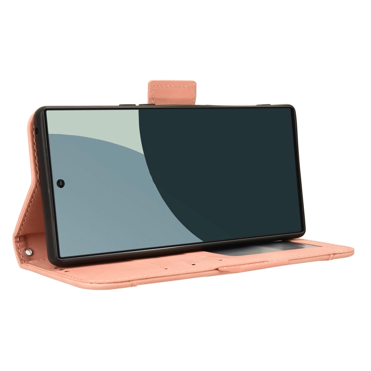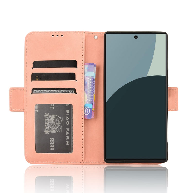Funda para Sharp Aquos R9 Skin Feel con Textura de Becerro y Ranuras para Tarjetas (Rosa)