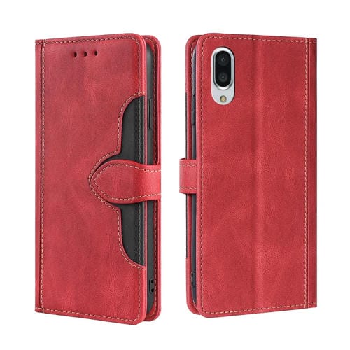 Funda para Sharp Aquos Sense 3 Plus Sombrero de Paja Cuero Hebilla Magnética (Rojo)