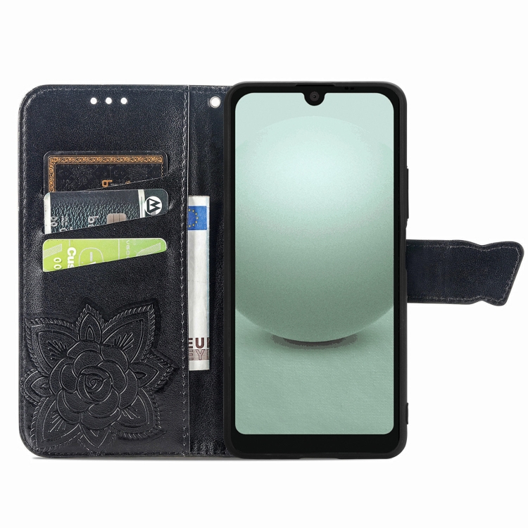 Estuche para Sharp Aquos Wish 3 Butterfly Love Flower en Cuero En Relieve (Negro)