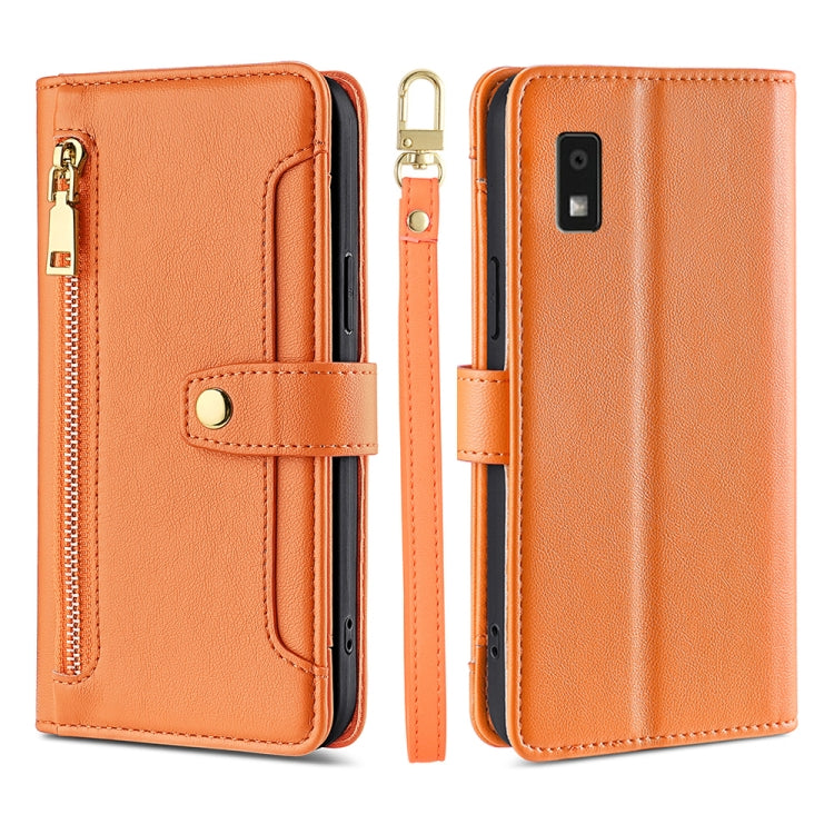 Funda de Cuero Crossbody para Sharp Aquos Wish 3 Lite con Textura Sheep y Cierre Zipper (Naranja)